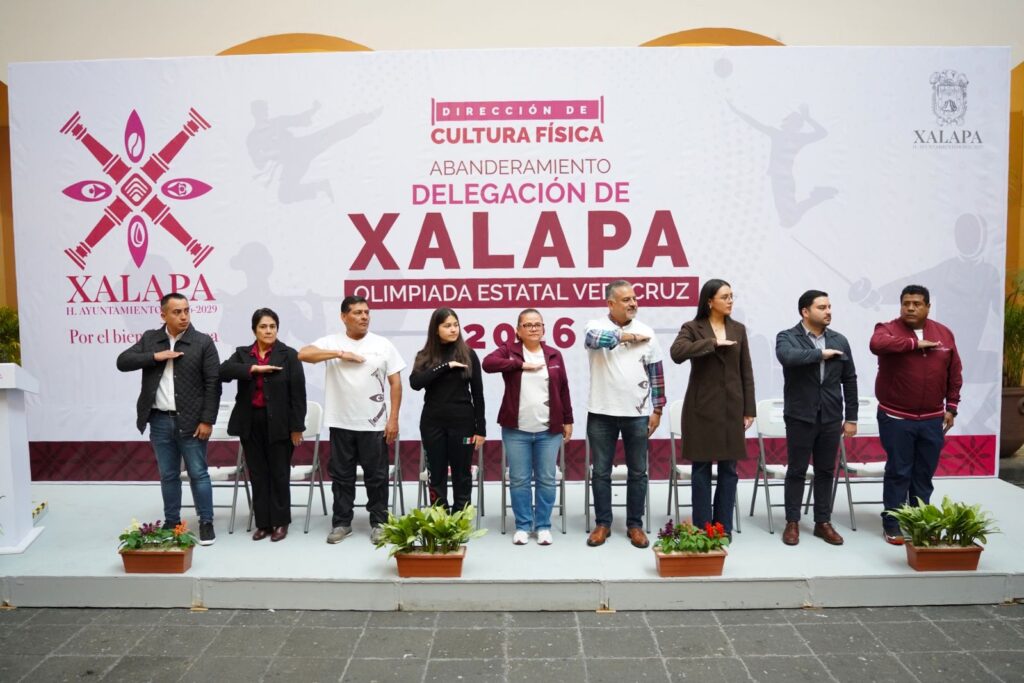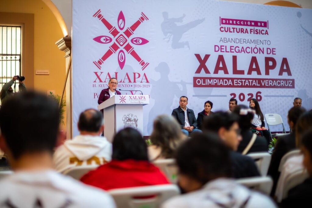Xalapa, Ver., 11 de febrero de 2026.- “En el Gobierno Municipal creemos que el deporte es una herramienta fundamental para transformar a nuestra sociedad, ya que aleja de la violencia y genera proyectos de vida positivos”, destacó la Alcaldesa, Lic. Daniela Griego Ceballos, durante la ceremonia de abanderamiento de la Delegación de Xalapa que participará en la Olimpiada Estatal Veracruz 2026.