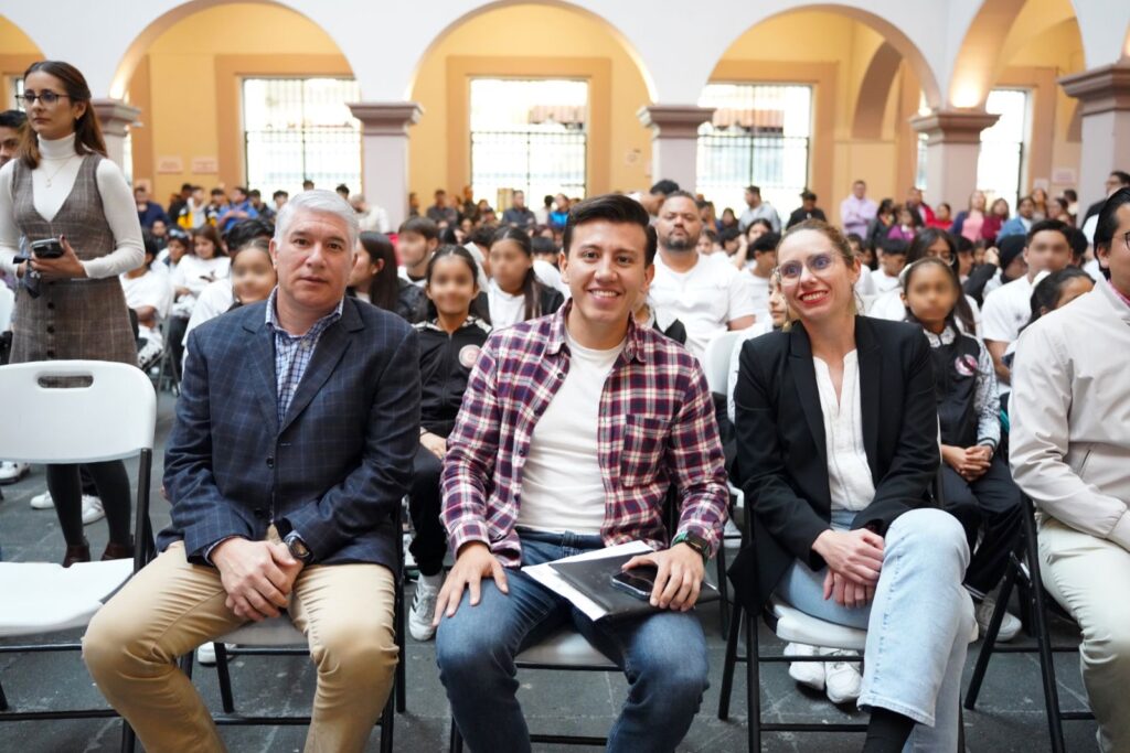 En el acto también estuvieron presentes el entrenador de levantamiento de pesas Luis Tapia Arizmendi, titulares de las Direcciones Municipales, así como estudiantes de la Escuela Secundaria Experimental, quienes realizaron los honores a la bandera.