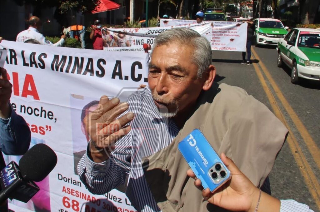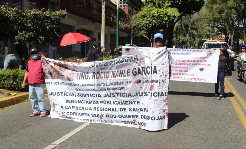 Xalapa, Ver., 25 de febrero de 2026.– Integrantes del Fraccionamiento Ecológico y Popular Las Minas A.C. marcharon por calles del centro de la ciudad para denunciar un presunto intento de despojo del terreno que ocupan desde 1995 en el ejido El Tronconal, donde actualmente habitan 15 familias, entre ellas mujeres y menores de edad.