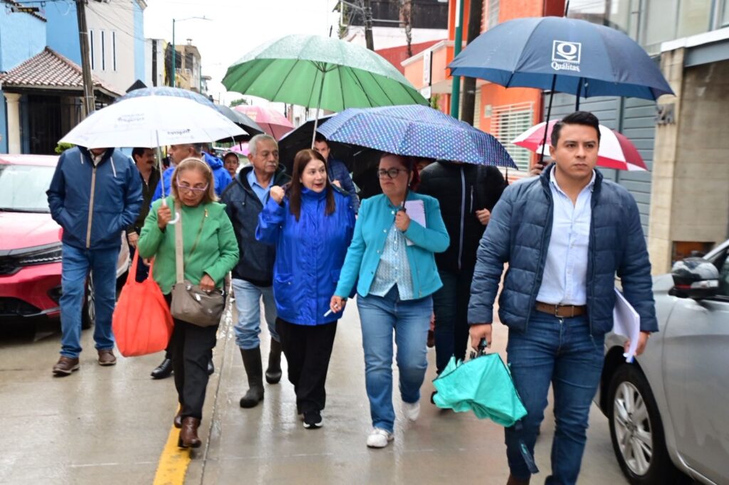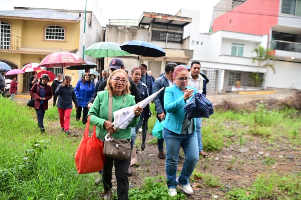 Xalapa, Ver.- A pesar de la lluvia registrada este jueves por la tarde, la alcaldesa electa de Xalapa, Daniela Griego Ceballos, visitó a las y los vecinos del fraccionamiento Jardines de Bambú, quienes le compartieron sus principales necesidades y propuestas para mejorar su entorno.