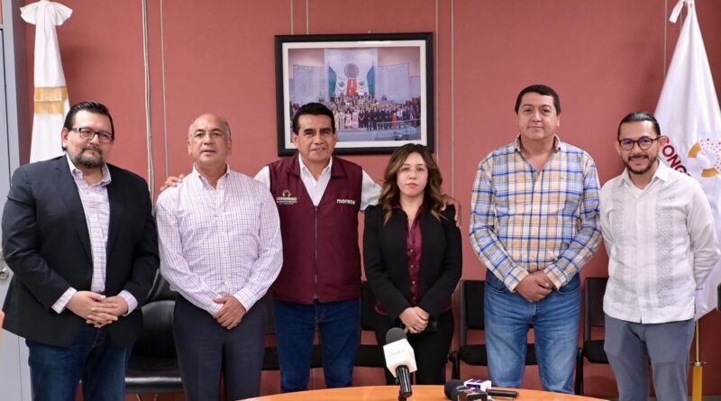 Xalapa, Ver., 15 de octubre de 2025.- Los coordinadores de los Grupos Legislativos de Morena, Partido Verde Ecologista de México (PVEM) y Partido Acción Nacional (PAN), la presidenta de la Mesa Directiva, diputada Naomi Edith Gómez Santos, y los diputados del Partido del Trabajo (PT) y de Movimiento Ciudadano (MC), anunciaron en conferencia de prensa el Acuerdo para donar un mes de salario de cada diputada o diputado integrante de la LXVII Legislatura, en un acto de unidad y solidaridad con las personas afectadas por las inundaciones registradas en el norte de Veracruz.