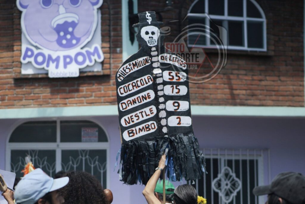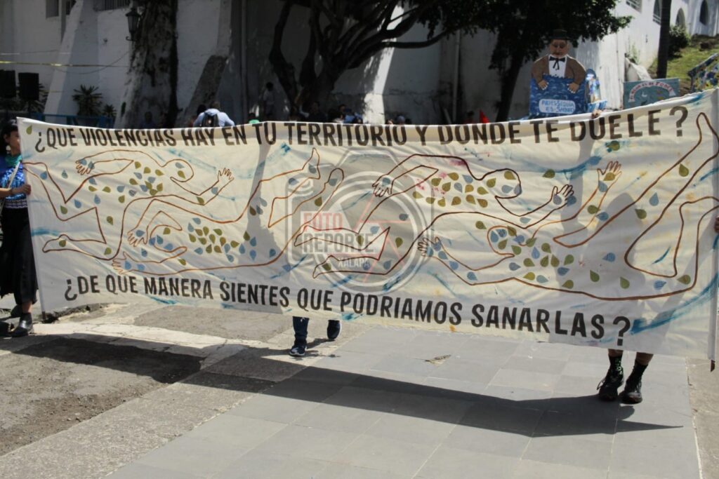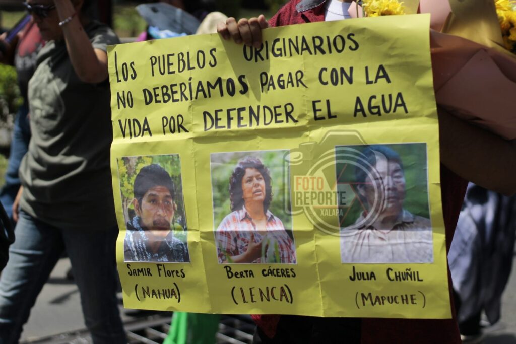 Las consignas se intensificaron con el coro colectivo: “Esta marcha no es de fiesta, es de lucha y de protesta”, así como llamados de justicia para defensores ambientales. “Porque defienden el agua, los matan. Porque defienden la vida, los matan. ¡Alto a las agresiones!”, expresaron.