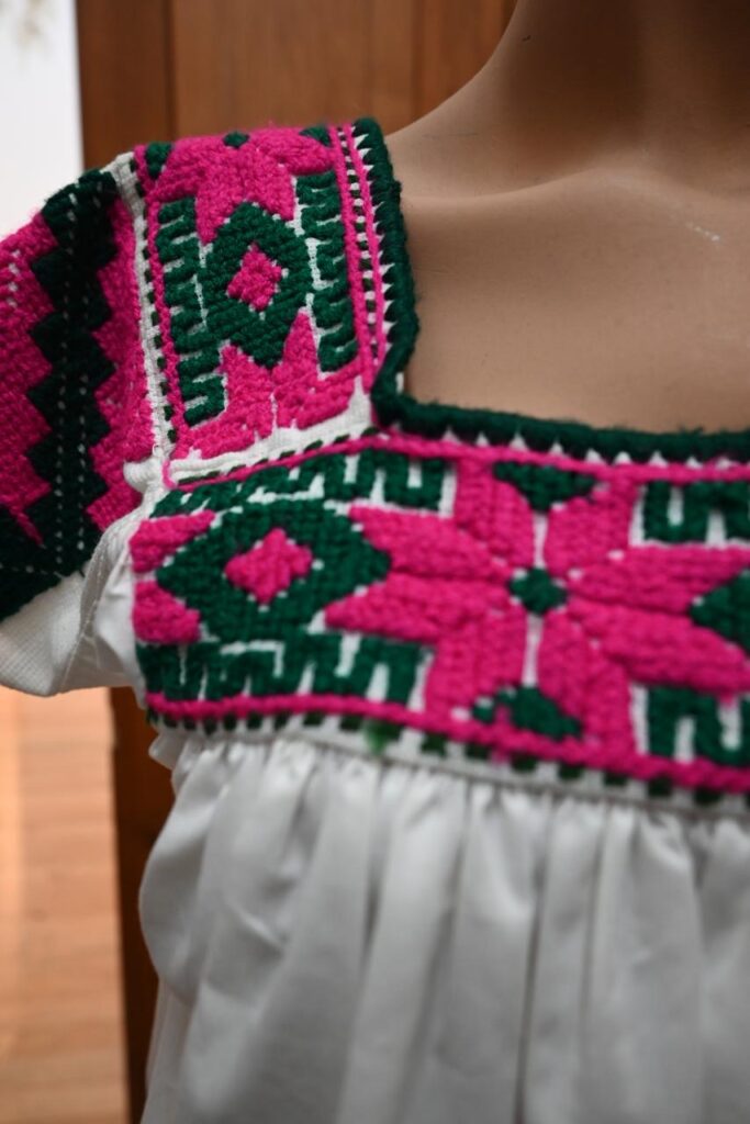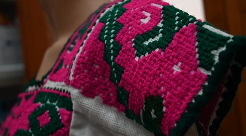 Las piezas son artesanías que preservan técnicas actualmente poco comunes, como el bordado en punto de cruz, de lomillo y el tejido en telar de cintura.