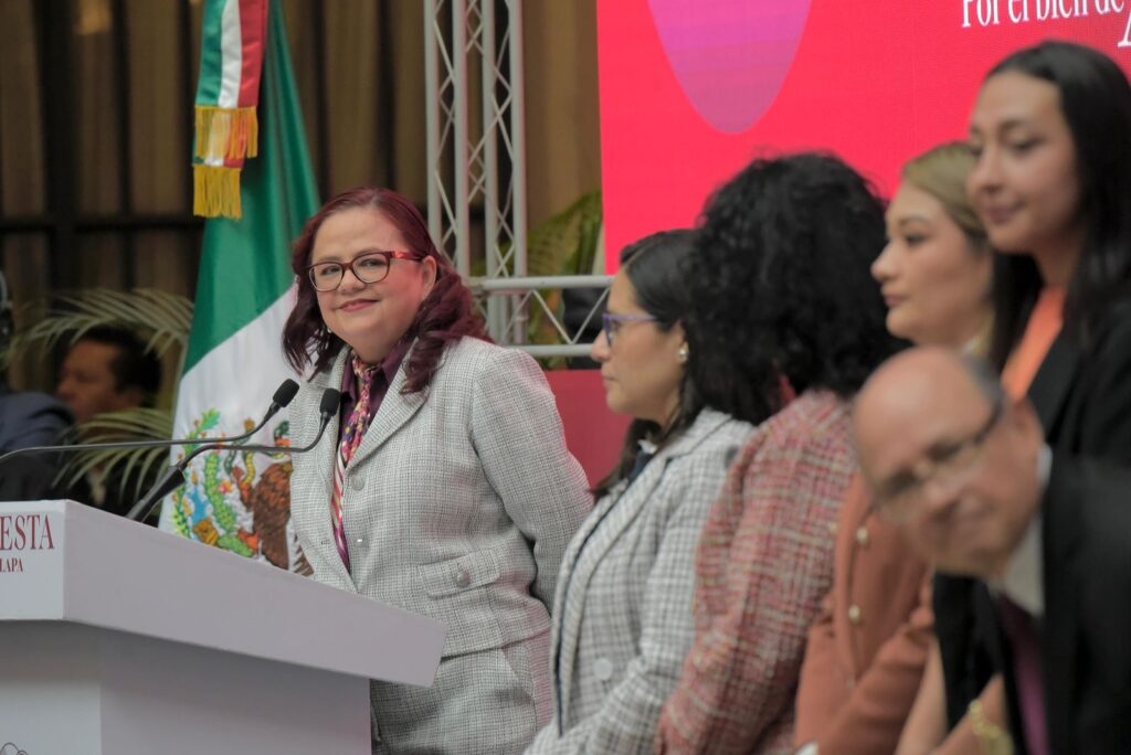 Asimismo, recordó su trayectoria de más de 30 años en la vida política y social, vinculada a la defensa de los derechos de las mujeres, las infancias, la clase trabajadora, el magisterio y pensionistas, además de su experiencia legislativa como diputada local y como directora del Instituto de Pensiones del Estado (IPE), desde donde impulsó un riguroso proceso de rescate financiero del organismo.
