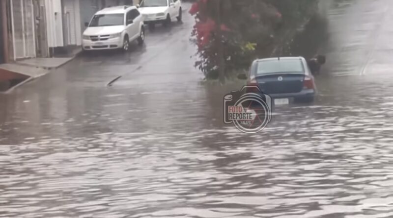 El incidente ocurrió la tarde de este martes sobre la calle Fray Andrés de Olmos, en la colonia Rafael Lucio, donde las lluvias provocaron encharcamientos considerables.