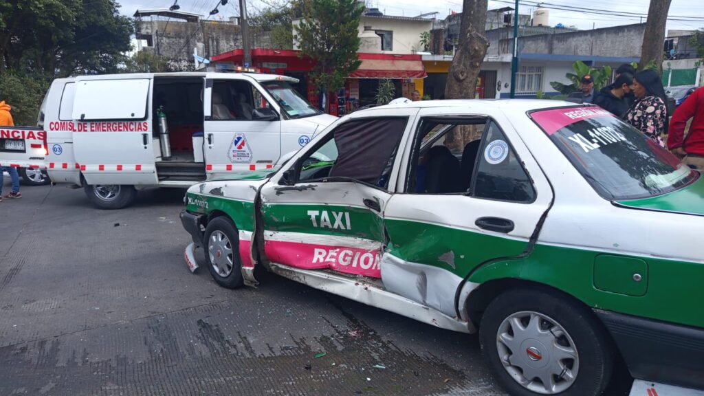 Xalapa, Ver., 11 de enero de 2026.- Al mediodía de este domingo se registró un accidente vial en la intersección de la avenida Fray Andrés de Olmos y la calle Luis Hidalgo Monroy, en la colonia Rafael Lucio, donde se vieron involucrados una camioneta blanca y un automóvil del servicio de transporte público en modalidad de taxi, marcado con el número económico XL-11072.