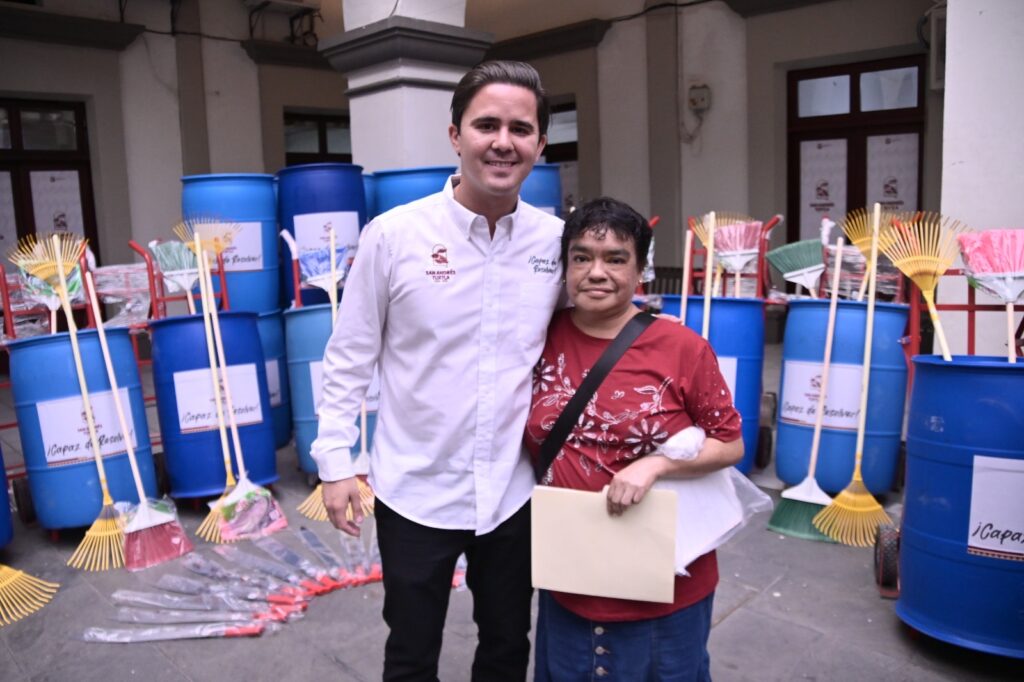 San Andrés Tuxtla, Ver., 18 de marzo de 2026.- El Gobierno Municipal entregó a empleados de la dirección de Limpia Publica, materiales para realizar sus labores diarias en las calles de la ciudad.