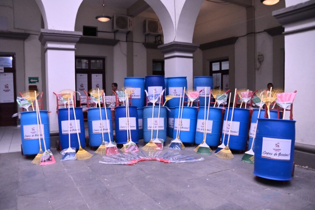La secretaria general del Sindicato de Trabajadores Municipales al Servicio del H. Ayuntamiento, Marisol Medina Ixtepan, indicó que las herramientas entregadas al área de limpieza y barrido de calles fue un acuerdo establecido dentro de las condiciones generales de trabajo, y cumplido por el alcalde Rafa Fararoni Magaña con la organización sindical.