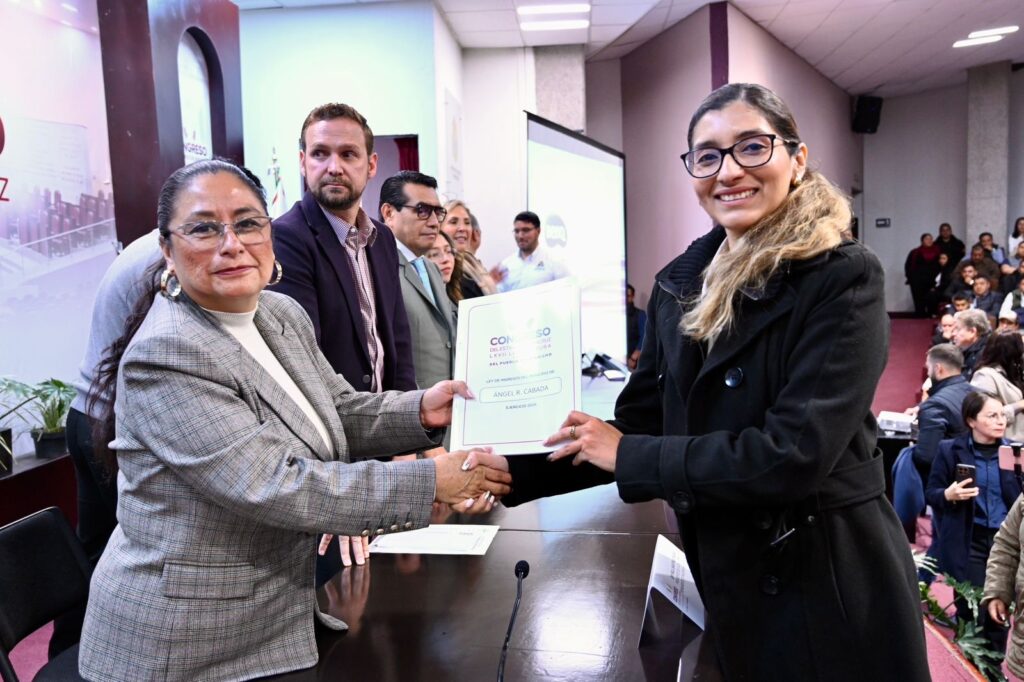 Asistieron a este acto las diputadas María Elena Córdova Molina y Citlali Medellín Careaga, los diputados Alejandro Porras Marín y Felipe Pineda Barradas, servidoras y servidores públicos municipales y autoridades de este Congreso.
