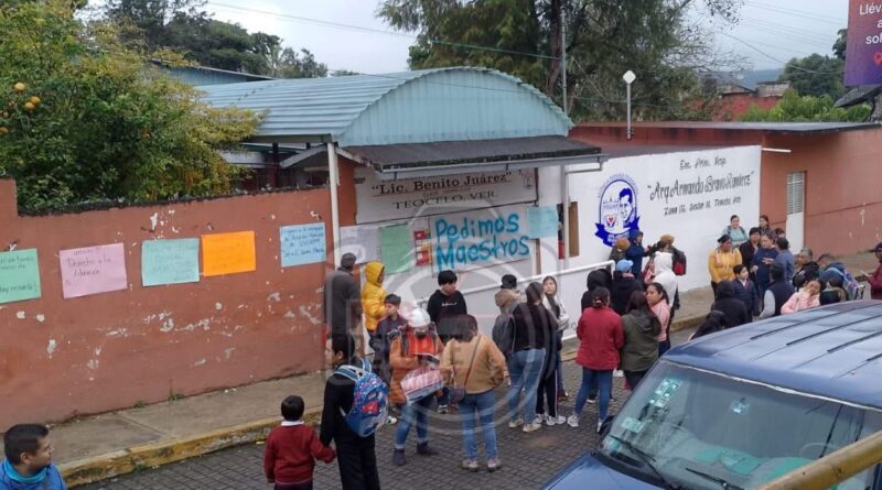 Teocelo, Ver.,21-enero-2026.-Padres de familia tomaron la mañana de este miércoles la escuela primaria “Lic. Benito Juárez”, ubicada en el municipio de Teocelo, en protesta por la falta de maestros para los grupos de segundo y quinto grado, situación que ha afectado de manera directa a los alumnos, quienes se quedaron sin clases.
