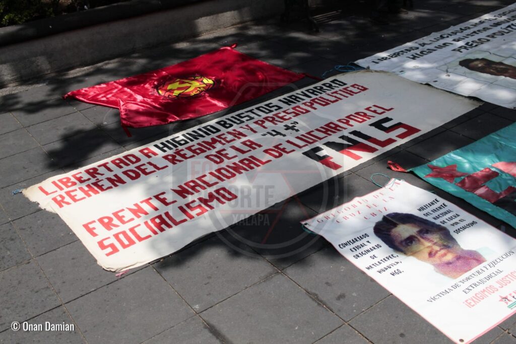 Xalapa, Ver., 17 de abril 2026.- En el marco del Día Internacional del Preso Político, integrantes del Frente Nacional de Lucha por el Socialismo (FNLS) y la Juventud Comunista de México (JCM) realizaron una conferencia de prensa y acto de protesta en el parque Juárez, donde exigieron la liberación de personas que consideran detenidas por motivos políticos.