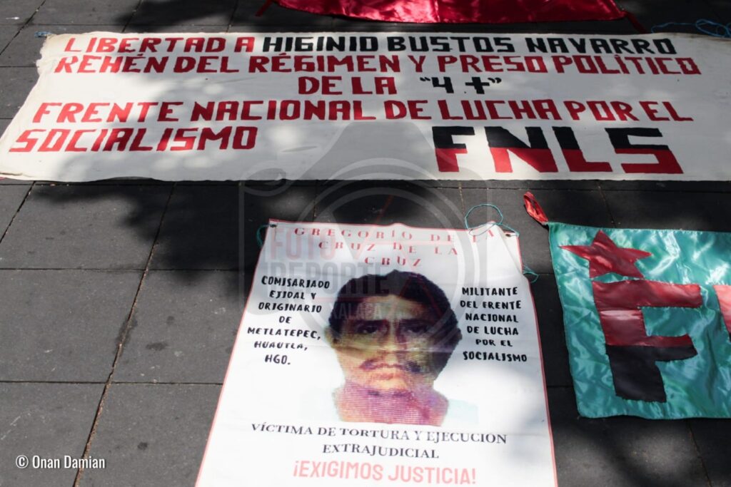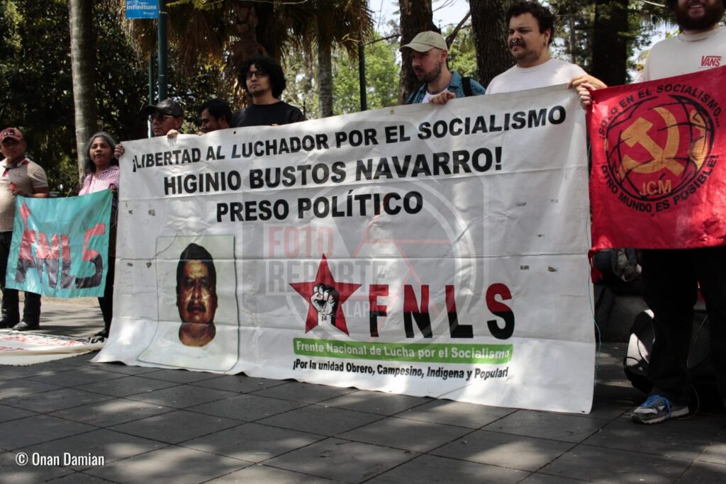 Durante el mitin, uno de los oradores, centró su intervención en el caso de Higinio Bustos Navarro, a quien identificó como indígena náhuatl y militante del FNLS. De acuerdo con su testimonio, el activista fue detenido el 3 de mayo de 2021 en la localidad de Terrerillos, municipio de Chicontepec, presuntamente por un grupo de elementos armados, y trasladado inicialmente al Centro de Reinserción Social de Tantoyuca.