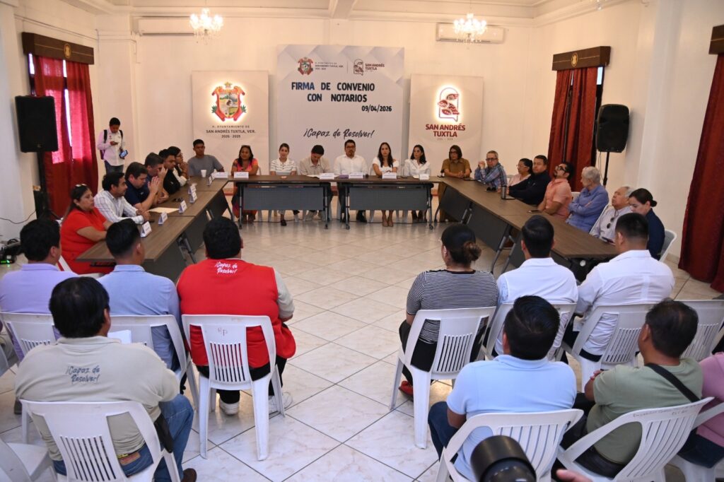 San Andrés Tuxtla, Ver., 9 de abril de 2026.- Para seguir fortaleciendo la seguridad jurídica de la ciudad, el Ayuntamiento de San Andrés Tuxtla y la Decimonovena demarcación del Colegio de Notarios firmaron un acuerdo de colaboración en beneficio de las y los sanandrescanos.
