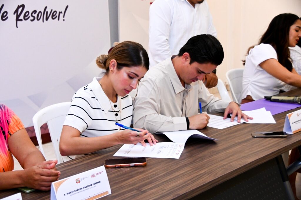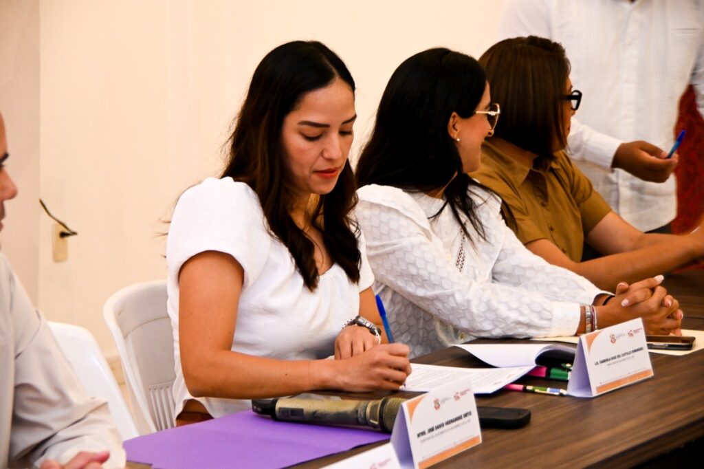 Presentes en esta firma de colaboración la directora del DIF, Lorena González Kegel, la sindica única, Gabriela Díaz del Castillo, regidoras y regidores, además de integrantes de la Decimonovena demarcación del Colegio de Notarios.