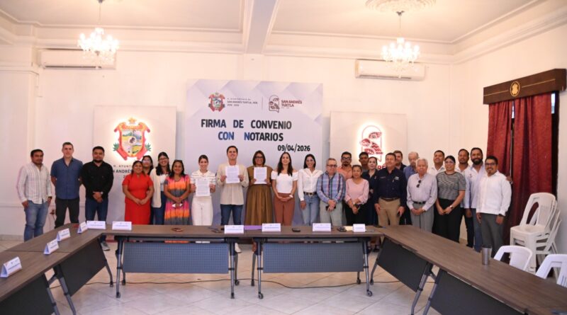 San Andrés Tuxtla, Ver., 9 de abril de 2026.- Para seguir fortaleciendo la seguridad jurídica de la ciudad, el Ayuntamiento de San Andrés Tuxtla y la Decimonovena demarcación del Colegio de Notarios firmaron un acuerdo de colaboración en beneficio de las y los sanandrescanos.