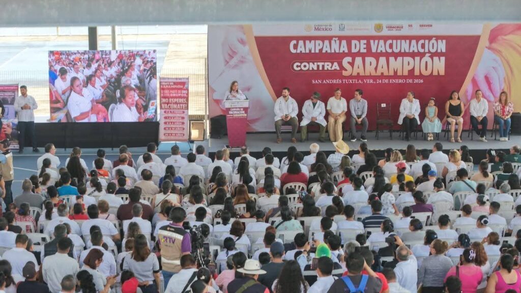 San Andrés Tuxtla, Ver., 24 de enero de 2026.- En un acto de total coordinación entre el Ayuntamiento de San Andrés Tuxtla y el Gobierno del Estado que encabeza la Ingeniera, Rocío Nahle García, arrancó en la ciudad, la campaña estatal de vacunación contra el Sarampión.