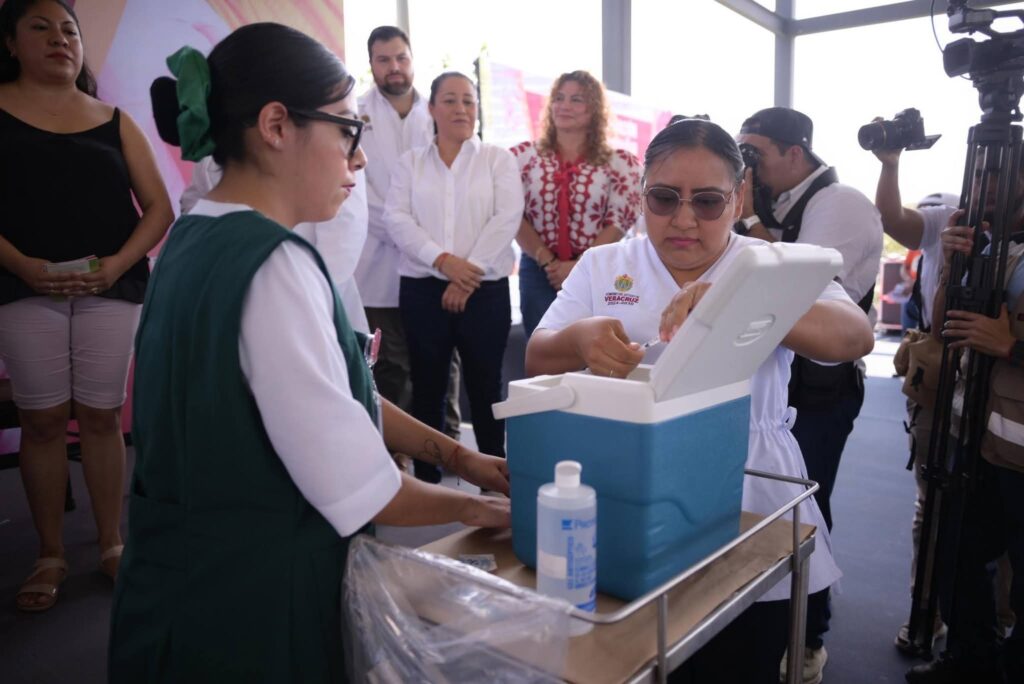 *La Gobernadora de Veracruz, Rocío Nahle, dio el banderazo de inicio a la campaña estatal de vacunación contra el Sarampión en San Andrés Tuxtla.