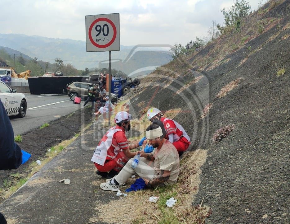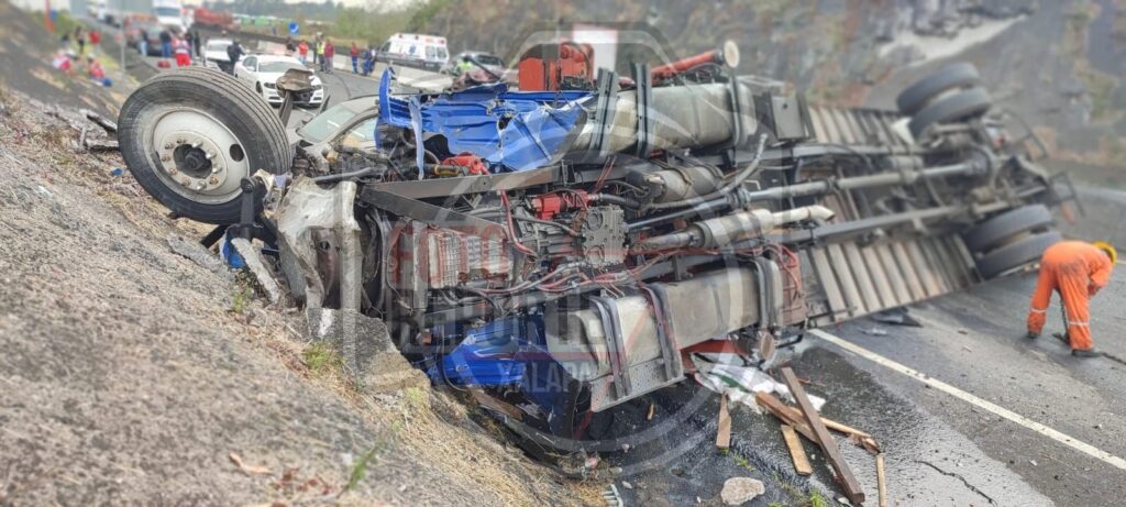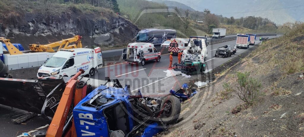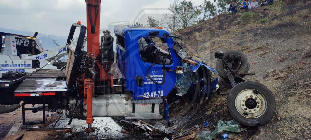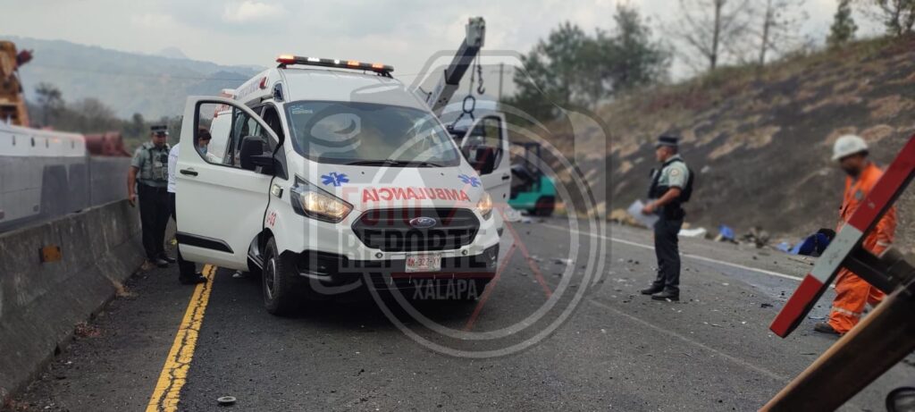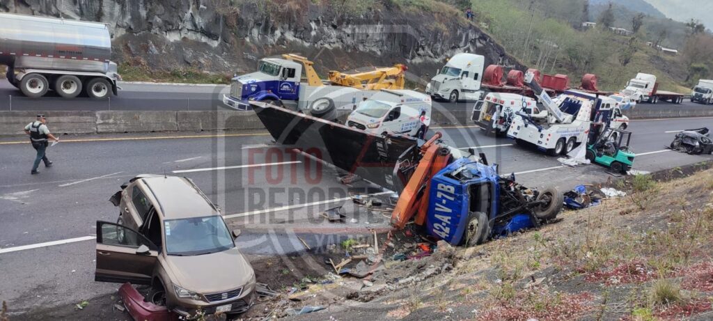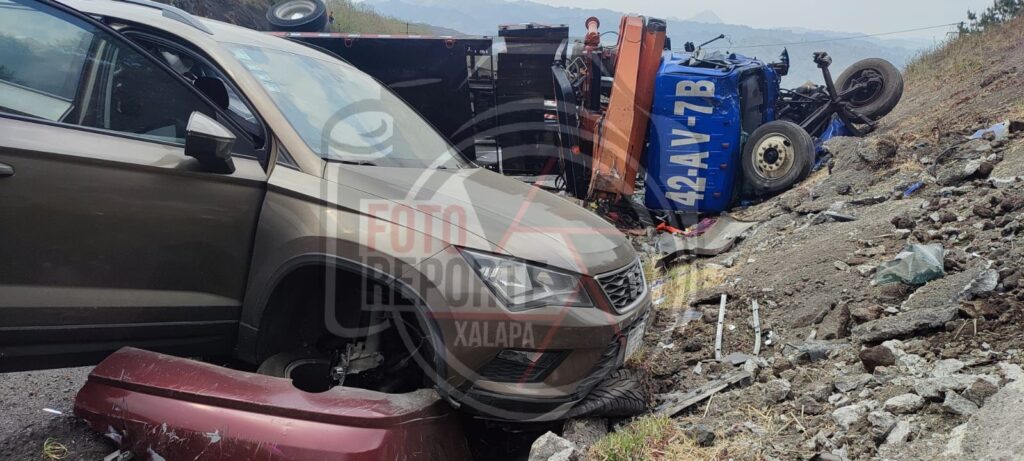 6-marzo-2026.-Un aparatoso accidente se registró sobre la autopista Xalapa–Perote, a la altura de la zona conocida como Fresno, con dirección hacia la capital veracruzana, luego de que una grúa tipo Torton perdiera el control y terminara impactando al menos a cinco vehículos a su paso, lo que dejó varias personas lesionadas y fuerte movilización de cuerpos de emergencia.