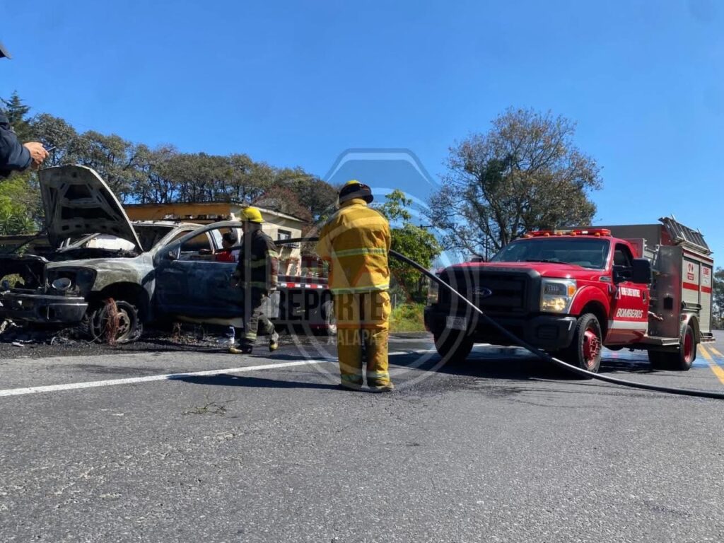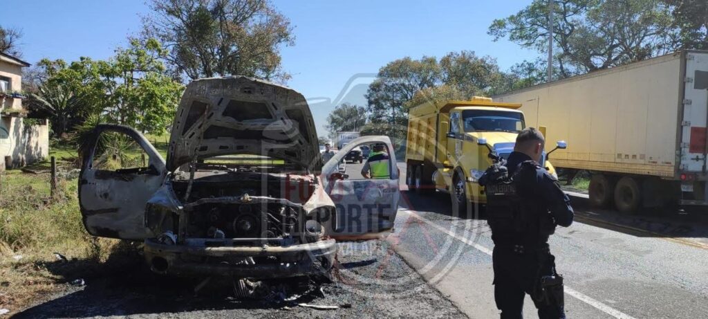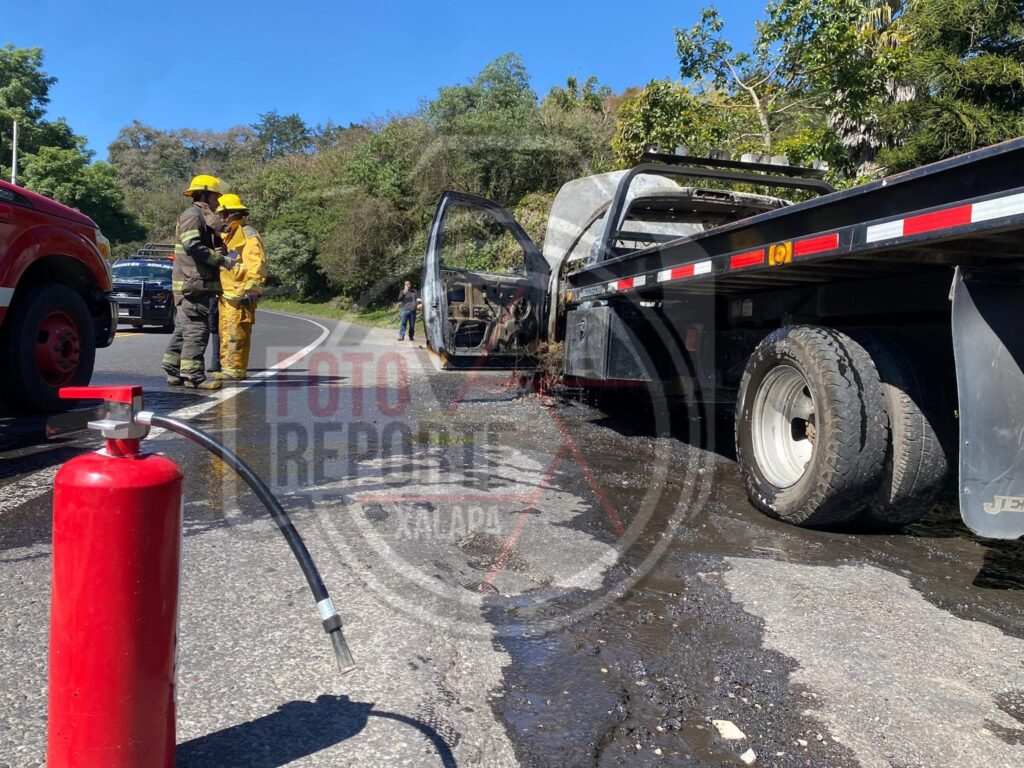 Rafael Lucio, Ver.,18-febrero-2026.-Una grúa quedó reducida a chatarra la mañana de este miércoles tras registrarse un fuerte incendio mientras circulaba sobre la carretera federal Xalapa-Veracruz. El incidente ocurrió a la altura del municipio de Rafael Lucio, en las inmediaciones de la zona conocida como «Rancho Chico», donde el fuego consumió la unidad en cuestión de minutos.