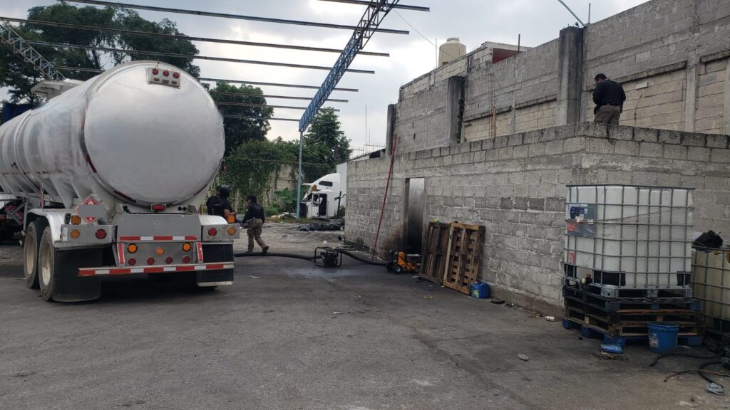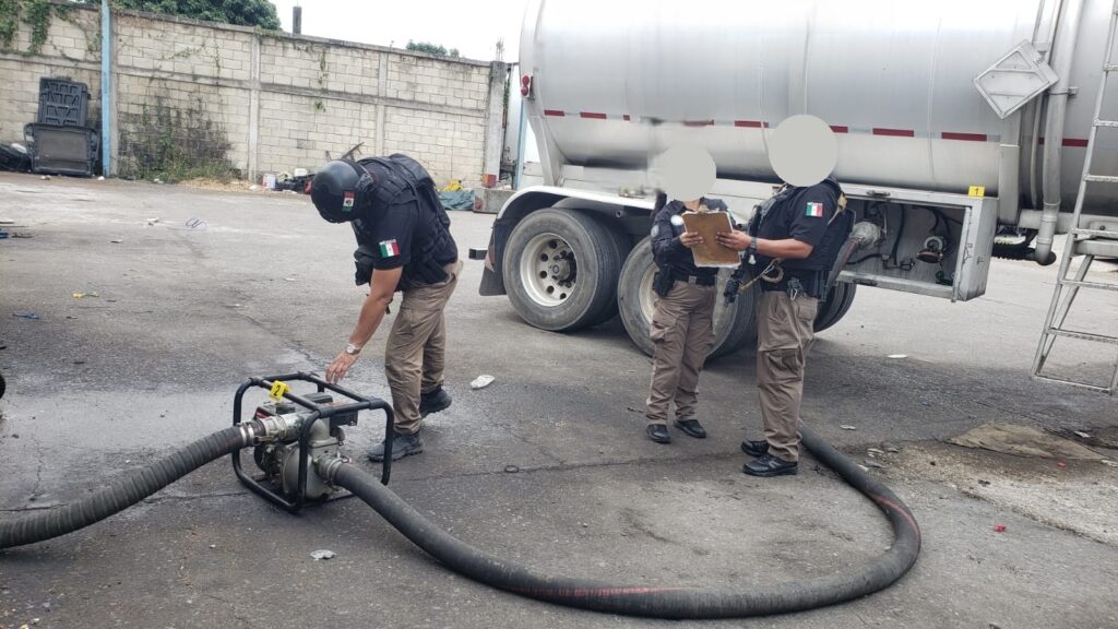 En el lugar se localizaron dos contenedores metálicos, cuatro tractocamiones, dos semirremolques tipo pipa, dos tipo jaula, dos con caja seca, uno tipo plataforma, además de automóviles, camionetas y una motocicleta. También se aseguró equipo vinculado con la extracción y manejo del combustible, como motobombas, flujómetros y mangueras.