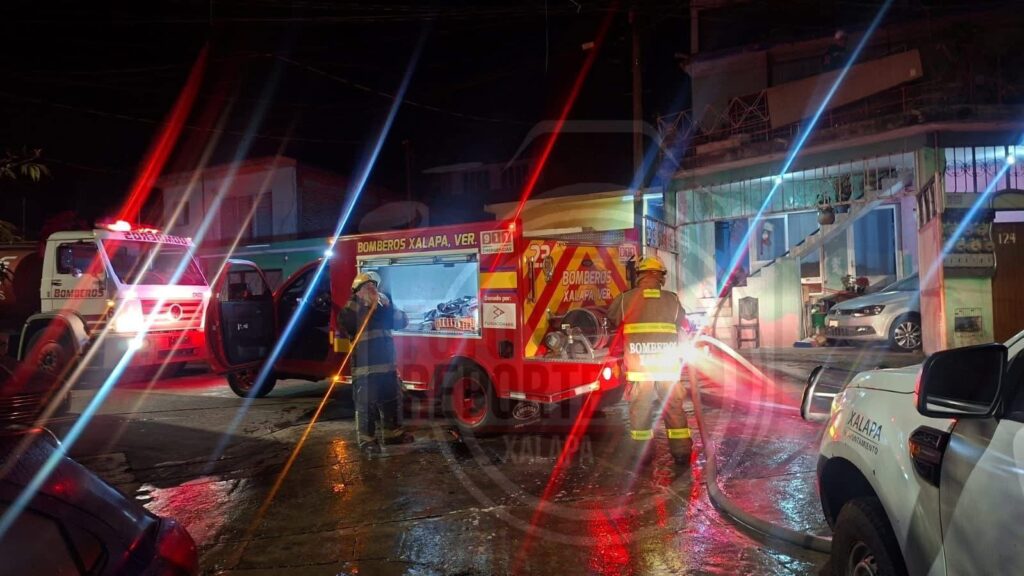 16-diciembre-2025.-La madrugada de este martes se registró un incendio en la colonia Progreso Macuiltepetl, el cual movilizó a cuerpos de emergencia hasta la calle Michoacán.