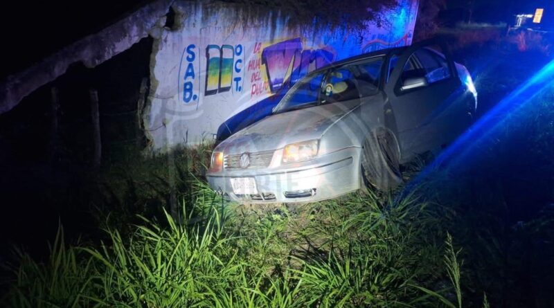 28-octubre-2025.-La noche de este martes, un vehículo tipo Jetta, de color gris, terminó fuera de la carretera Xalapa–Veracruz, a la altura del Club de Golf.