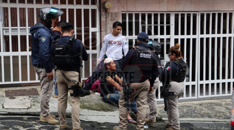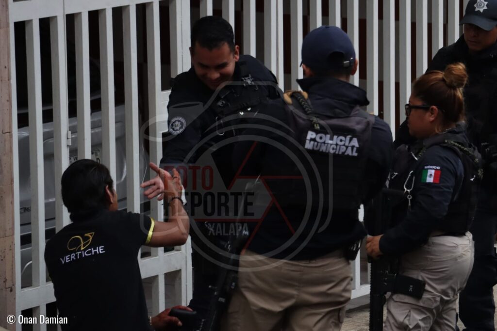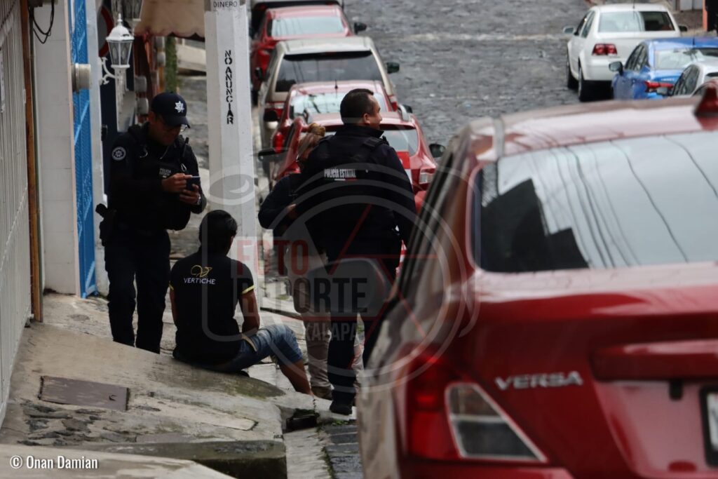 Xalapa, Ver., 08 de abril 2025.- Una movilización de corporaciones policiacas y cuerpos de emergencia se registró sobre la calle Alvarado, en la zona centro, tras el reporte de un sujeto que presuntamente intentaba huir por azoteas y terminó lesionado al caer.
