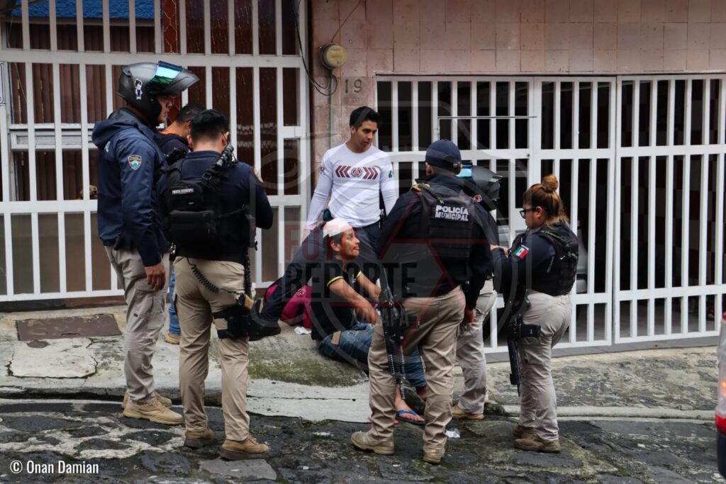 Minutos después, paramédicos de Protección Civil Municipal, en coordinación con personal del grupo Bengalas de la Policía Municipal, brindaron atención prehospitalaria al lesionado, realizando curaciones en la cabeza y estabilizándolo en el lugar.