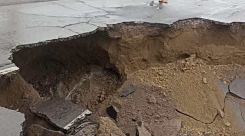 Lluvias dejan un mega socavón rumbo a Alvarado