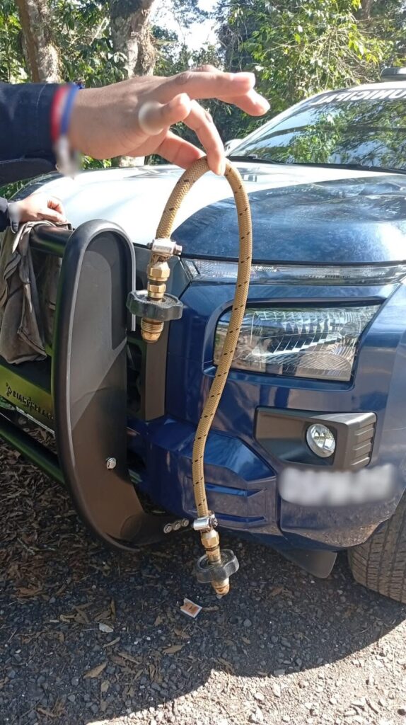 Al llegar al sitio, los uniformados detectaron una unidad distribuidora que realizaba de manera clandestina la transferencia de gas entre cilindros en plena vía pública, poniendo en grave riesgo a vecinos y automovilistas.