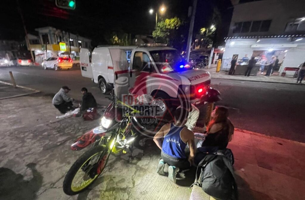Xalapa, Ver. 18 de febrero 2026.- Dos personas resultaron lesionadas luego de ser atropelladas por un motociclista en la intersección de las calles Mártires 28 de Agosto y avenida Primero de Mayo, en la colonia Obrero Campesina.