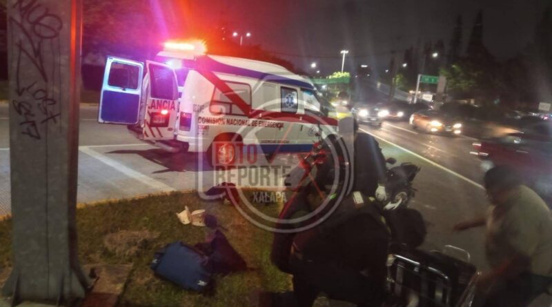 Xalapa, Ver., 13 de octubre de 2025.- La noche de este lunes un motociclista resultó lesionado tras ser atropellado por un vehículo cuyo conductor se dio a la fuga sobre Arco Sur, a la altura del Órgano de Fiscalización Superior (ORFIS).