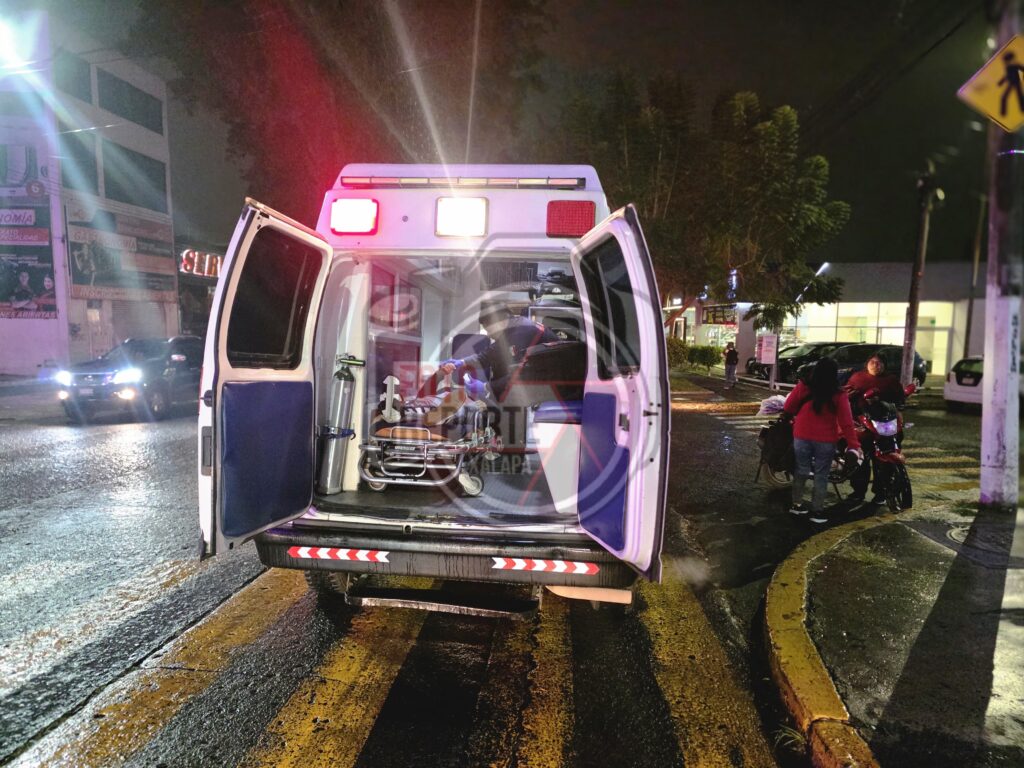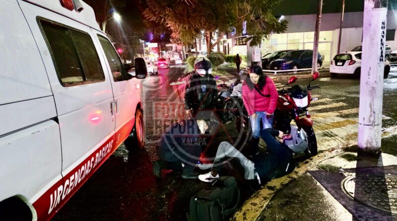 Xalapa, Ver., 12 de enero de 2026.- La noche de este lunes, el conductor de una motocicleta resultó lesionado luego de derrapar cuando circulaba sobre la avenida Manuel Ávila Camacho.