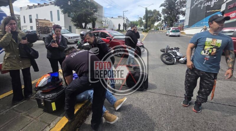 Xalapa, Ver., 21 de enero 2026.- Un motociclista resulto lesionado luego de que un automóvil color rojo saliera de la calle Negritos e impactara a la motocicleta cuando circulaba sobre la Av. Américas