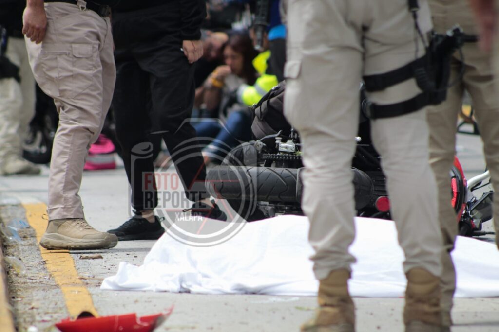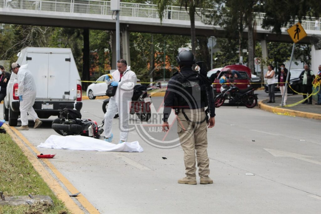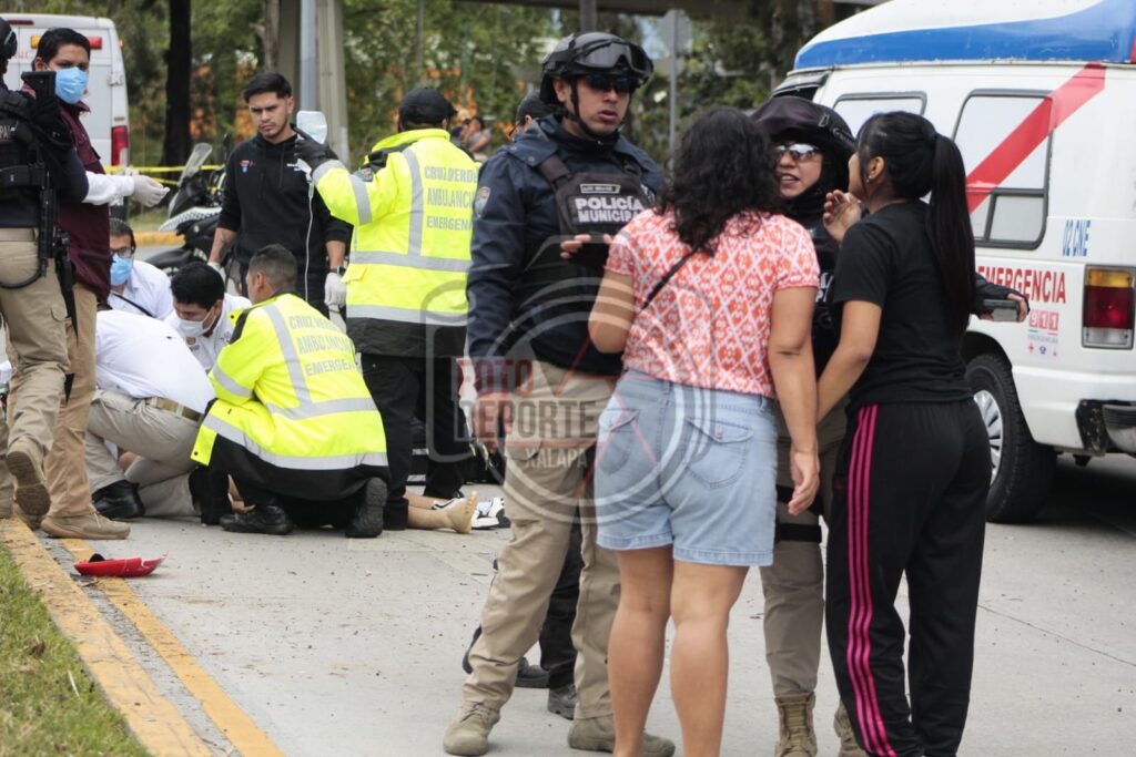 Xalapa, Ver. 28 de marzo 2026.- La tarde de este sábado se registró un accidente vehicular sobre Circuito Presidente, en dirección hacia la zona del Velódromo, donde un motociclista se impactó contra un camellón central, De acuerdo con versiones de testigos, la unidad de dos ruedas descendía por la vialidad presuntamente a exceso de velocidad cuando ocurrió el choque, lo que provocó que tanto el conductor como su acompañante salieran proyectados varios metros tras el impacto.