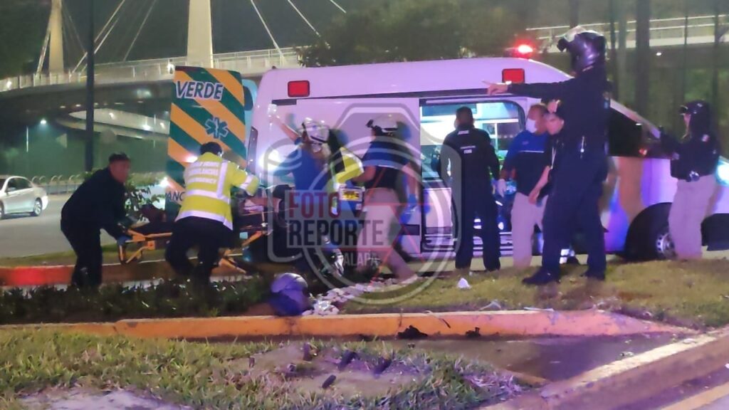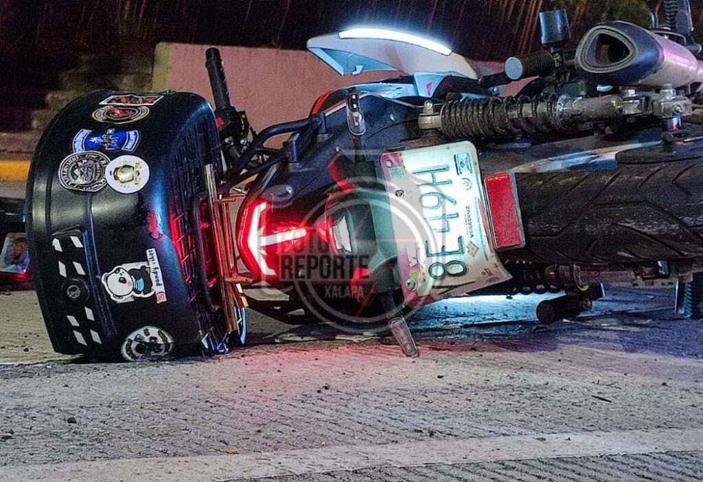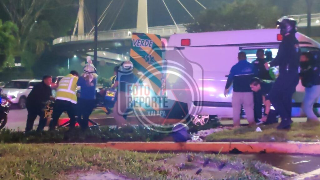 Xalapa, Ver., 3 de abril de 2026.- Una motociclista resultó gravemente lesionada luego de derrapar tras perder el control de su unidad cuando circulaba sobre Circuito Presidentes, con dirección hacia Coatepec.