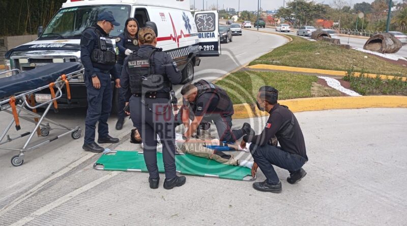 Xalapa, Ver. 15 de febrero 2026.- La tarde de este domingo se registró un accidente sobre Circuito Presidentes, en el tramo con dirección al Velódromo, donde un joven de 18 años de edad resultó lesionado tras perder el control de su motocicleta.
