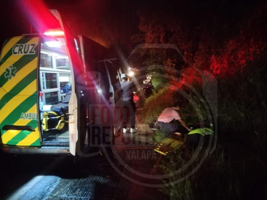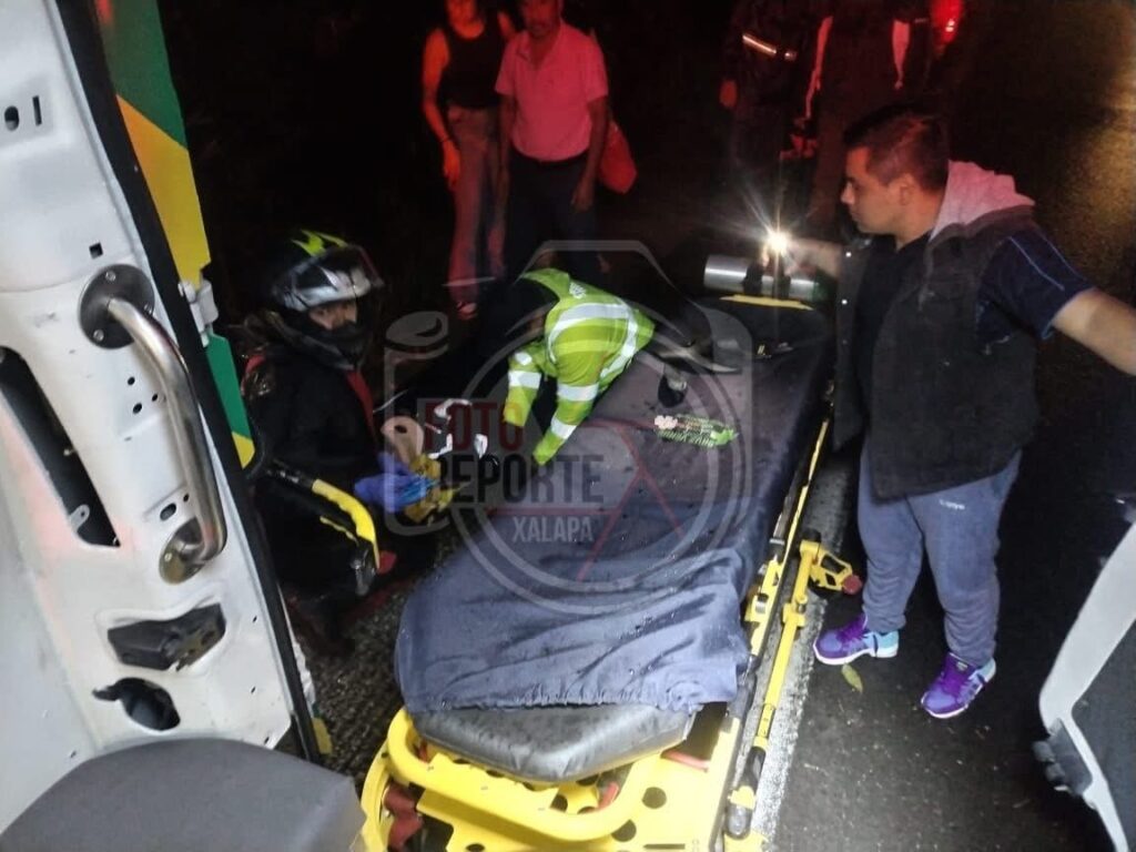 Xalapa, Ver., 4-octubre -2025.-Un motociclista resultó lesionado la noche de este sábado luego de que presuntamente un automovilista lo sacó del camino cuando circulaba sobre el bulevar Xalapa–Coatepec, a la altura de la zona conocida como Río Sordo.