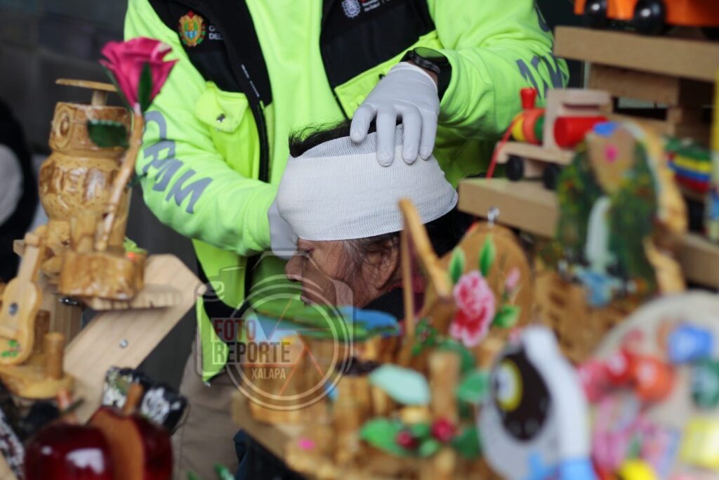 Xalapa, Ver. 13 de enero 2026.- Paramédicos del CRUM brindaron atención médica a una mujer de aproximadamente 50 años de edad, luego de que cayera al piso en los bajos del edificio Nachita, en el centro de la ciudad.