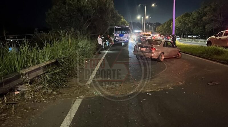 Banderilla, Ver., 7 de noviembre de 2025.- La circulación sobre el bulevar Xalapa–Banderilla se vio interrumpida la noche de este viernes, luego de que un automóvil que presuntamente viajaba a exceso de velocidad protagonizara un fuerte percance a la altura del puente de La Calera.