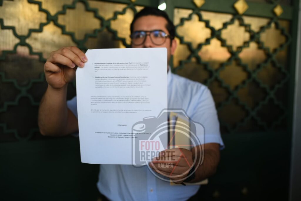Xalapa, Ver. 17 de diciembre de 2025.- Padres de familia y habitantes de la comunidad de El Roble perteneciente al municipio de Emiliano Zapata, se manifestaron la mañana de este miércoles a las afueras del Palacio de Gobierno, donde, con pancartas en mano, exigieron justicia por la muerte de una estudiante y atención inmediata a las condiciones del transporte público y de la carretera que conecta su comunidad.