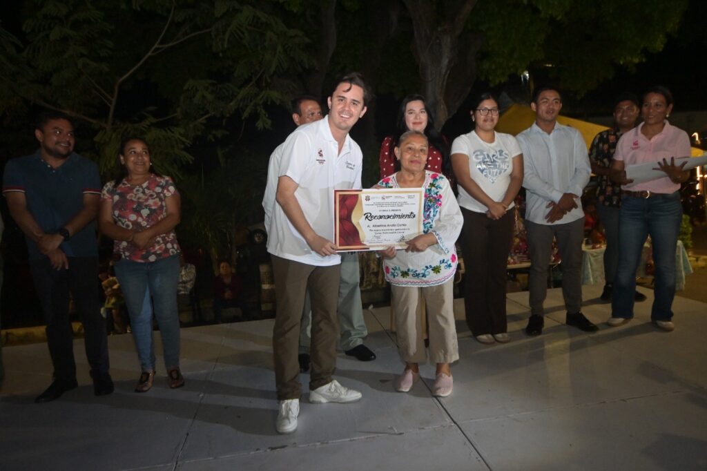 Durante la inauguración, el Gobierno Municipal entregó reconocimientos a mujeres que con su trayectoria han aportado sabor y arraigo a la cocina tradicional de Calería: Albertina Anota Cortéz, Camerina González Bustamante, Carmen Caixba Camacho, Andrea Escalera Cadena y la familia Bustamante Cruz.
