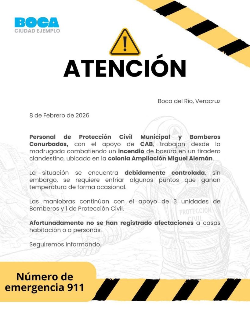 Boca del Río, Ver.- Personal de Protección Civil Municipal y Bomberos Conurbados, con el apoyo de CAB, trabajan desde la madrugada combatiendo un incendio de basura en un tiradero clandestino, ubicado en la colonia Ampliación Miguel Alemán.