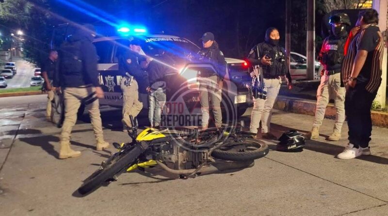 Xalapa, Ver., 12 de octubre de 2025.- Una persecución policiaca terminó en un aparatoso accidente la madrugada de este domingo, luego de que dos sujetos que viajaban a bordo de una motocicleta ignoraran el alto marcado por elementos de seguridad en la zona de El Olmo.