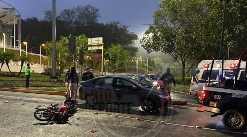 Debido al fuerte golpe, el motociclista quedó tendido sobre el asfalto, por lo que fue auxiliado por paramédicos del grupo Aries y trasladado a un hospital para su valoración y atención médica.