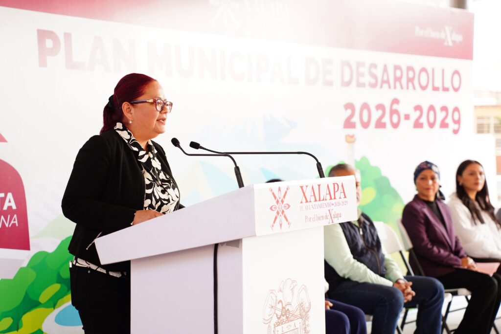 Durante su intervención, la Alcaldesa explicó que la consulta se abrió a la ciudadanía con el propósito de que el Plan Municipal de Desarrollo surja de la experiencia cotidiana de quienes habitan, recorren y construyen Xalapa.