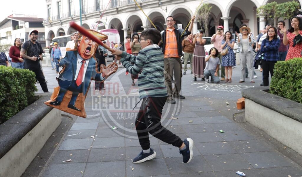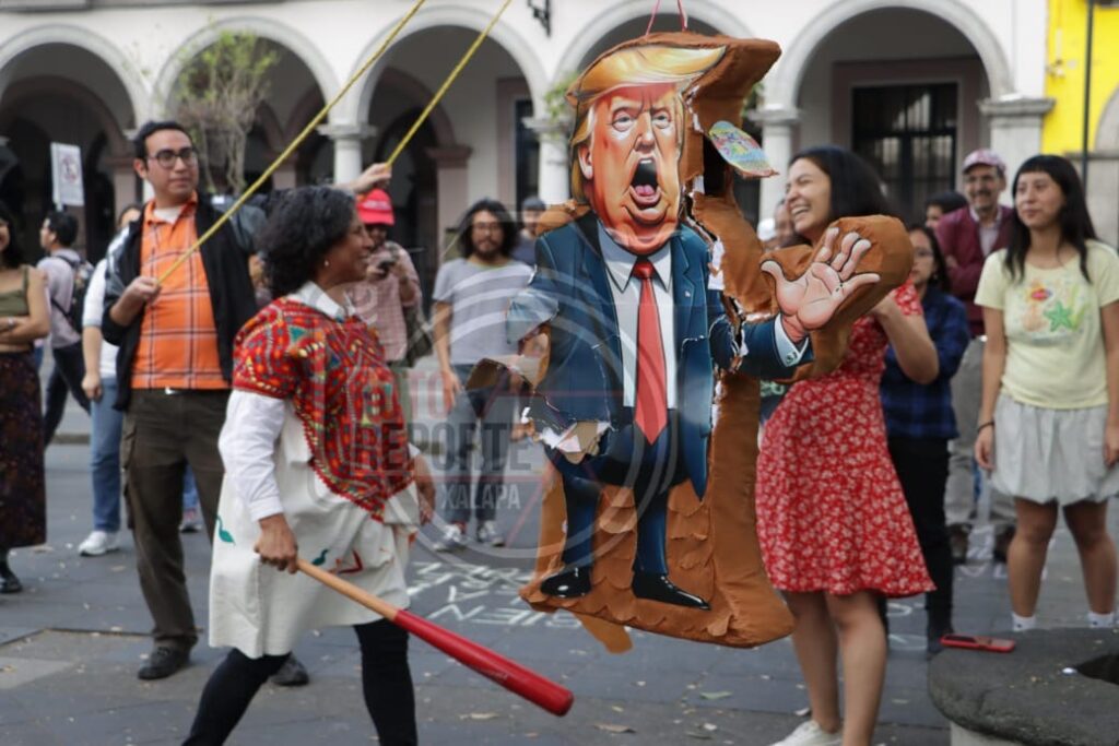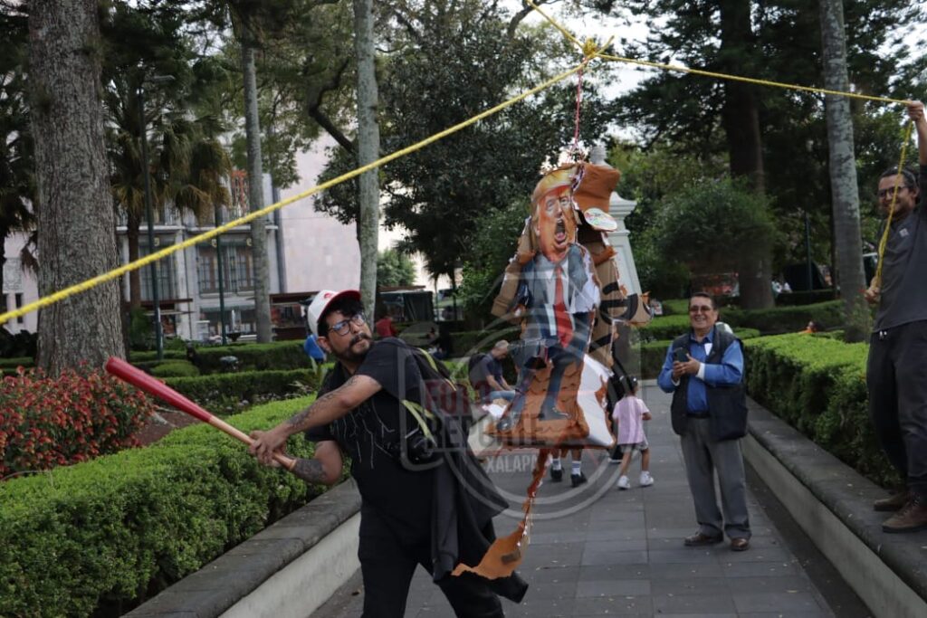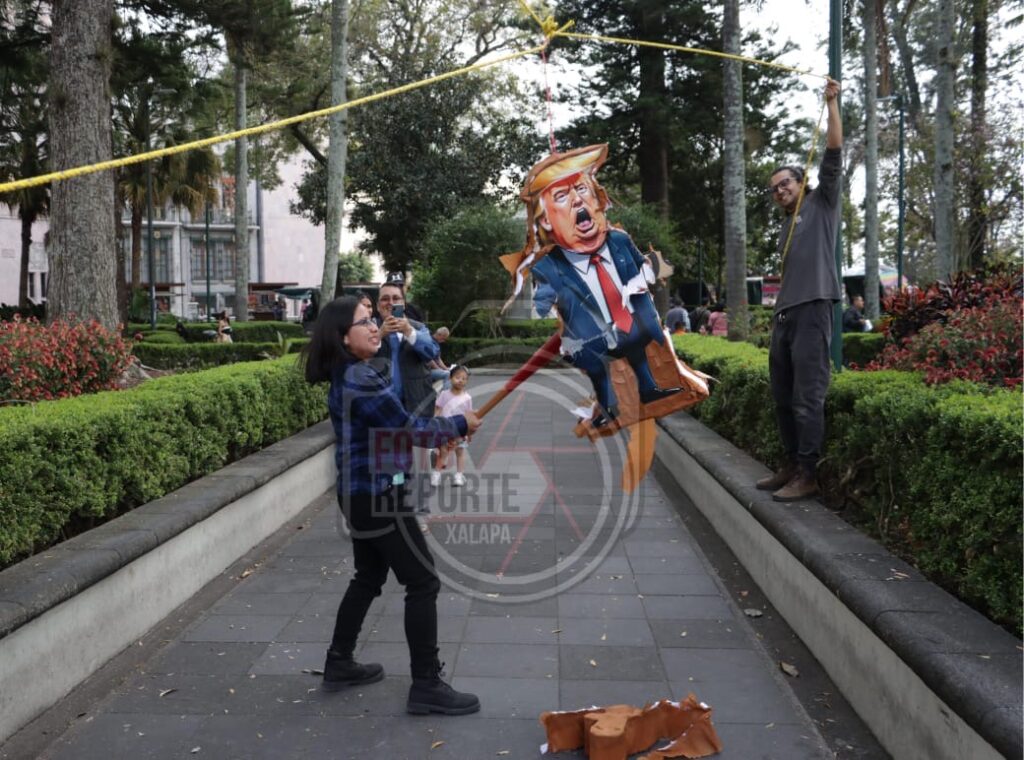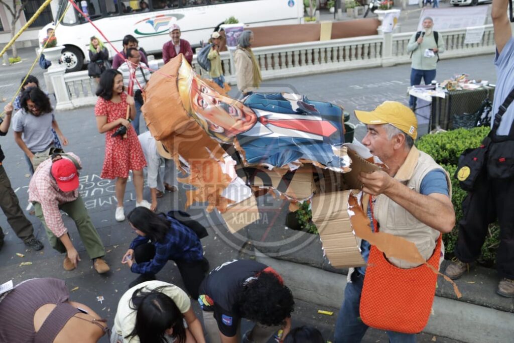 Queman piñata de Trump; xalapeños rechazan intervención militar en Venezuela
