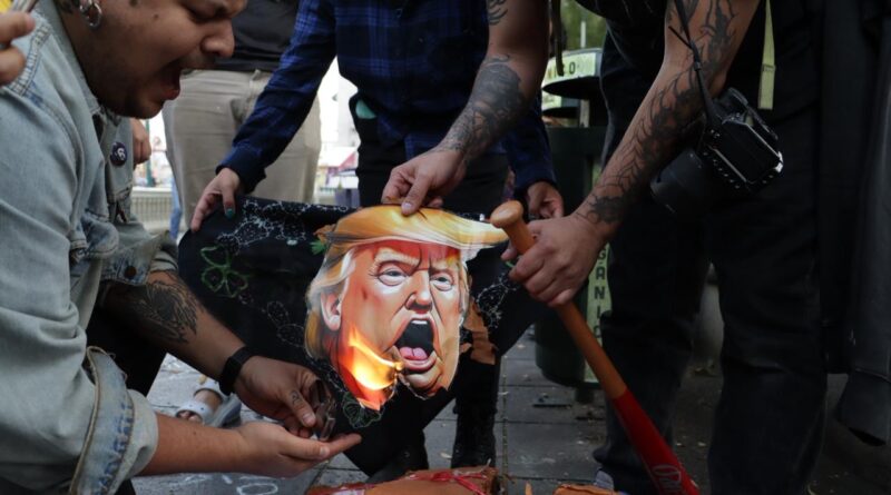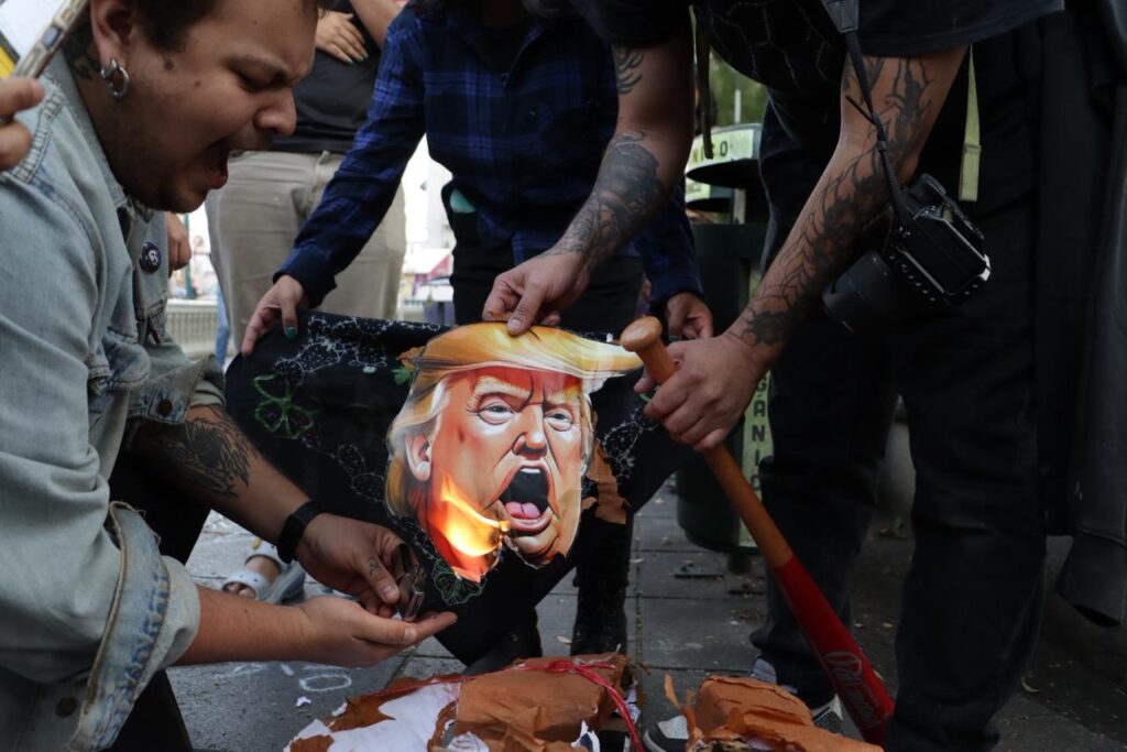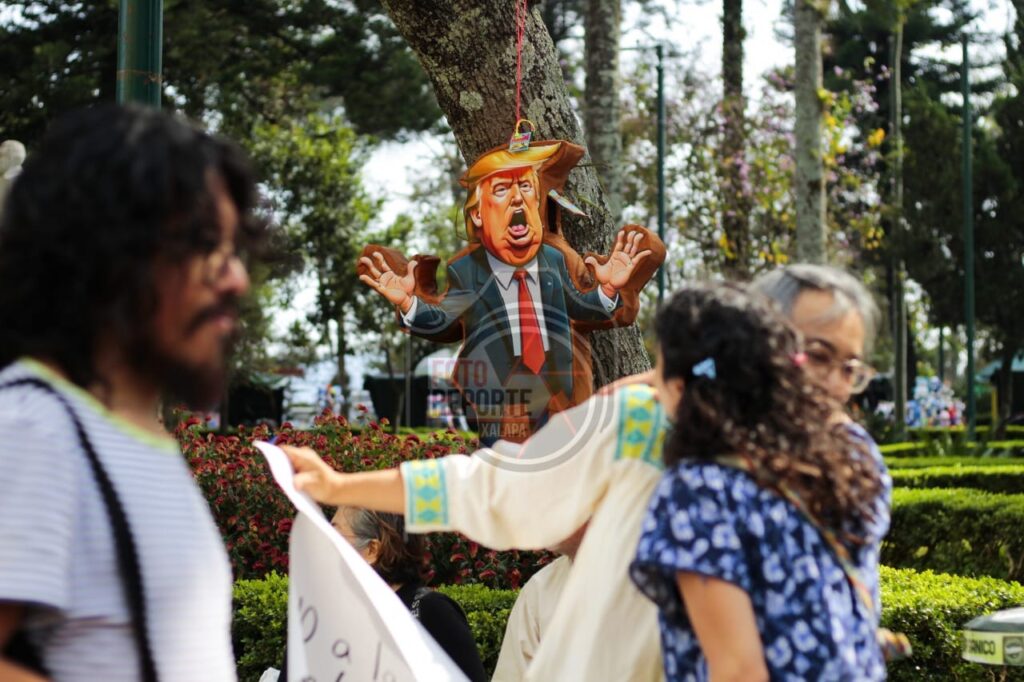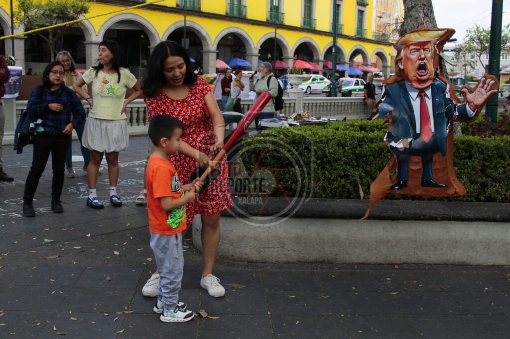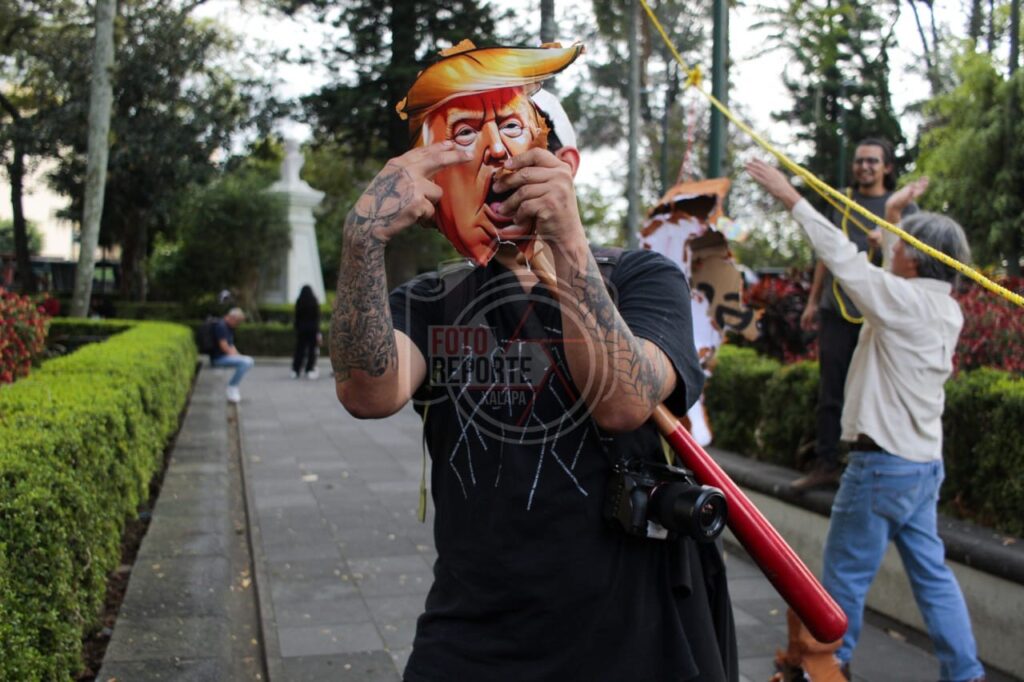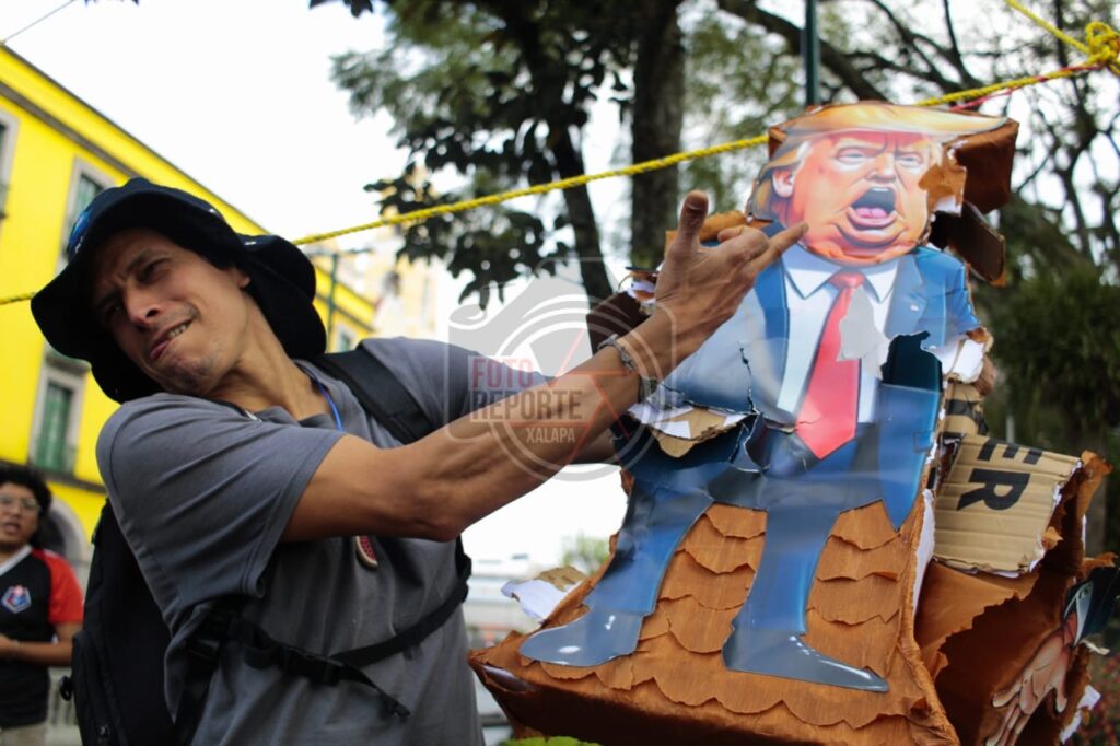 Queman piñata de Trump; xalapeños rechazan intervención militar en Venezuela
