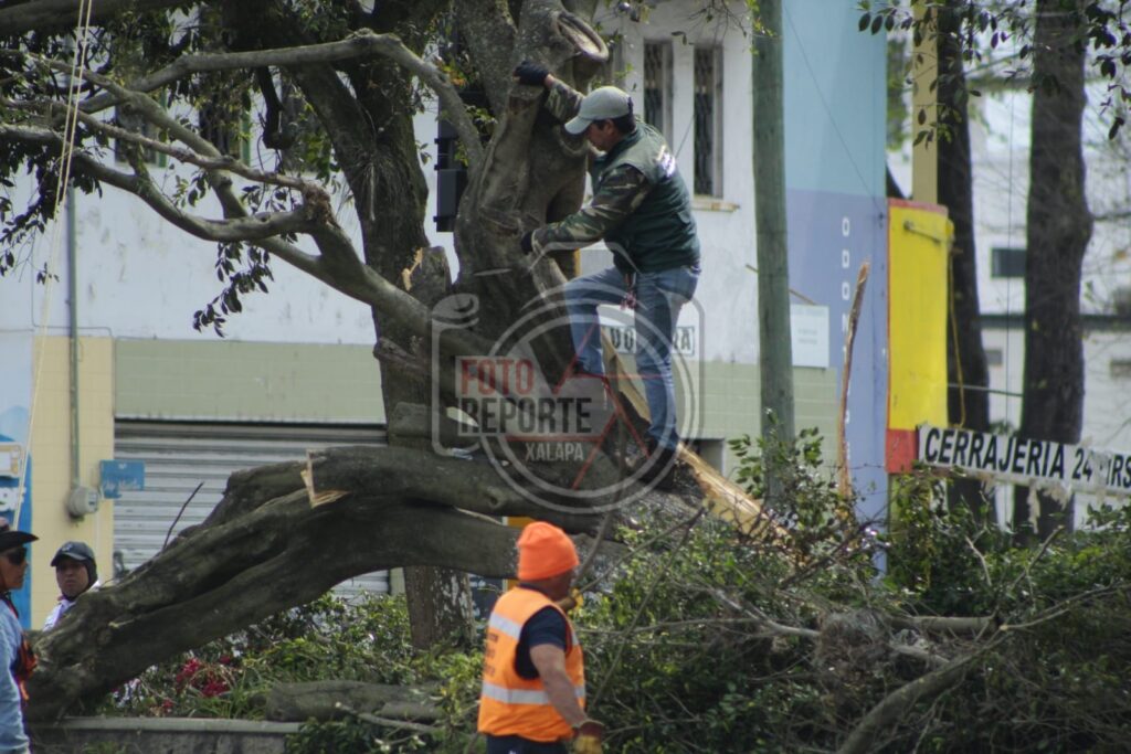El primer incidente se registró en la calle 5 de Febrero, en la zona centro, donde un techo de lamina fue derribado por el viento y terminó sobre unos cables. Posteriormente, se reportó la caída de un árbol sobre la avenida Xalapa, en la glorieta que conecta con avenida Orizaba, lo que ocasionó afectaciones a la circulación. Otro hecho ocurrió en las inmediaciones del Panteón Xalapeño, donde un árbol también cayó y obstruyó la vialidad.