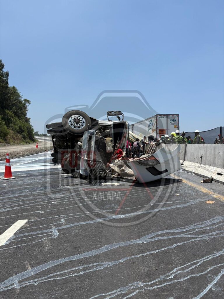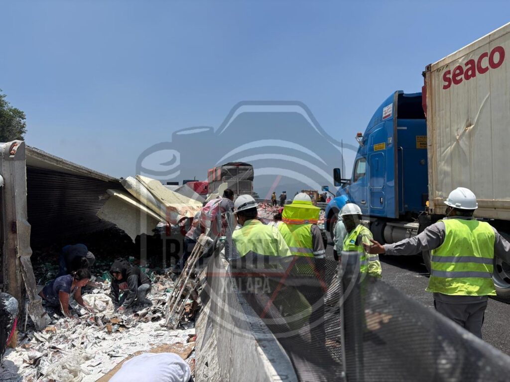Rapiña tras volcadura de tráiler en la Xalapa–Perote; hay dos lesionados